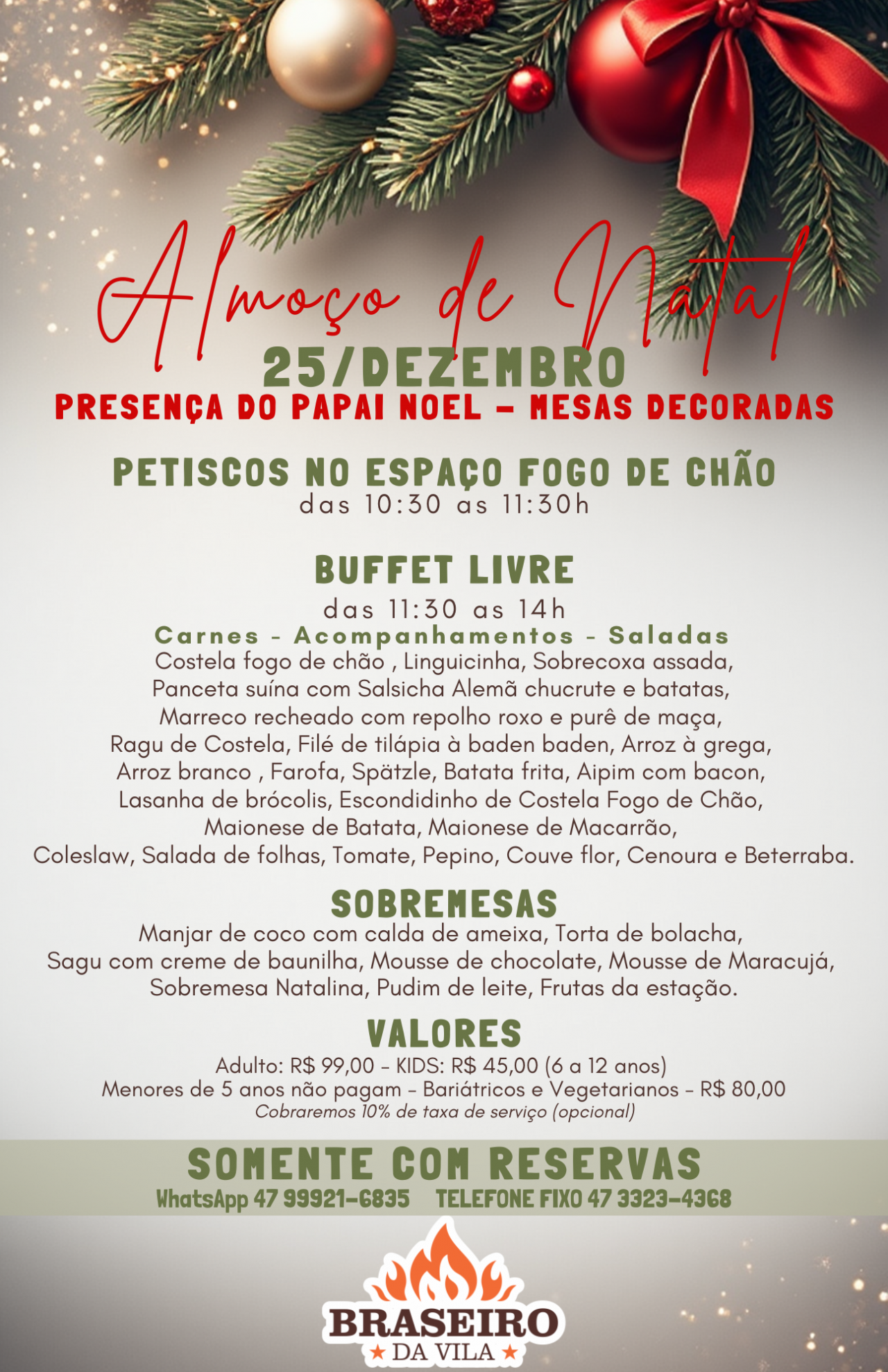 O Natal é uma data especial, e nós preparamos um dia inesquecível para você, sua família e seus amigos. Venha celebrar em um ambiente único, com a magia que só o Natal proporciona.
